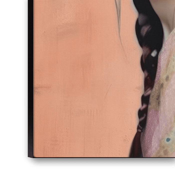 Modernes und farbenfrohes Porträt einer jungen Frau, die einen großen Hut trägt. Ein ebenso farbenfroher Hintergrund sorgt bei diesem Werk für einen angenehmen Kontrast.