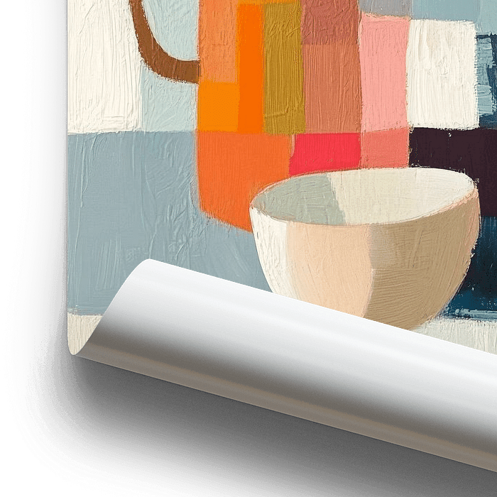 Möchten Sie Kaffee oder Tee? Buntes Stillleben, modern. Ein besonderer Blickfang für Ihr Interieur! Wählen Sie das Format und das Material für dieses Werk und machen Sie es zu Ihrem eigenen.
