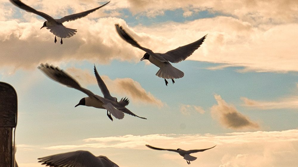 Über "Möwen vor einem Strandkorb am Strand der Ostsee. Küsten Urlaub am Meer"