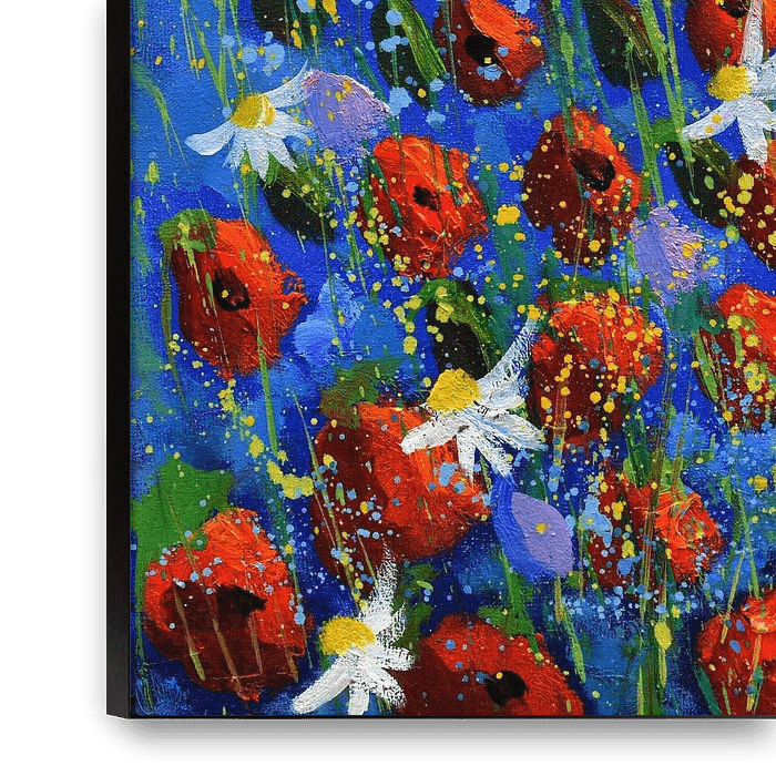 Bestelle dieses Blumen-Wandbild Mohnblumen und Gänseblümchen von pol ledent als Reproduktion auf Leinwand, Alu-Dibond, als Poster, Fototapete oder Acrylglasbild.