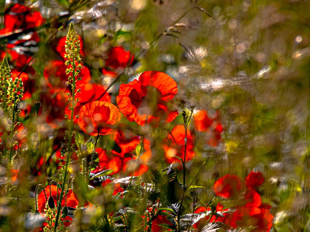 Im Frühjahr finden sich an immer mehr Straßenrändern unzählige Wildblumen, die Bienen und andere Insekten anlocken, wie zum Beispiel dieser Mohn. Eine Pracht der Farben. Achterhoek Mai 2020