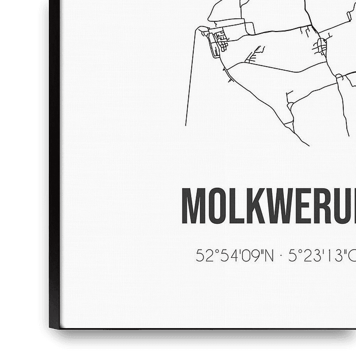 Bestelle dieses abstrakte Wandbild Molkwerum (Fryslan) | Karte | Schwarz und Weiß von Ortsdrucke als Reproduktion auf Leinwand, Alu-Dibond, als Poster, Fototapete oder Acrylglasbild.