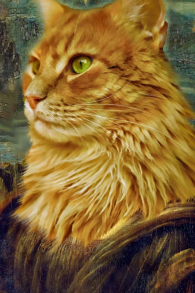 Inspiriert vom klassischen Meisterwerk von Leonardo Da Vinci, die Mona Lisa, darf ich Ihnen hier eine kreative Interpretation mit liebevoller Katze vorstellen. Es macht Freude alte Meisterwerke in die Neuzeit zu bringen, dies immer mit einem kleinen zwinkernden Auge und etwas Humor. Kunst die Freude macht.