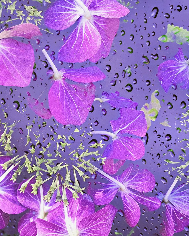 Dieses Bild ist eine visuelle Poesie, ein Moment der Stille, eingefangen zwischen Blüte und Tropfen. Was wir hier sehen, ist mehr als nur ein Bild von lila Hortensien - es ist ein intimer Dialog zwischen Natur und Gefühl. Die Blumen mit ihren zarten Blütenblättern und leuchtenden Farbtönen scheinen hinter einem Schleier aus Wassertropfen zu atmen. Als hätte die Welt gerade vor Rührung geweint, und die Blumen sind die tröstliche Antwort.