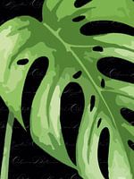 Monstera auf Schwarz mit Text Triptychon 3 v. 3 von AidasignArt