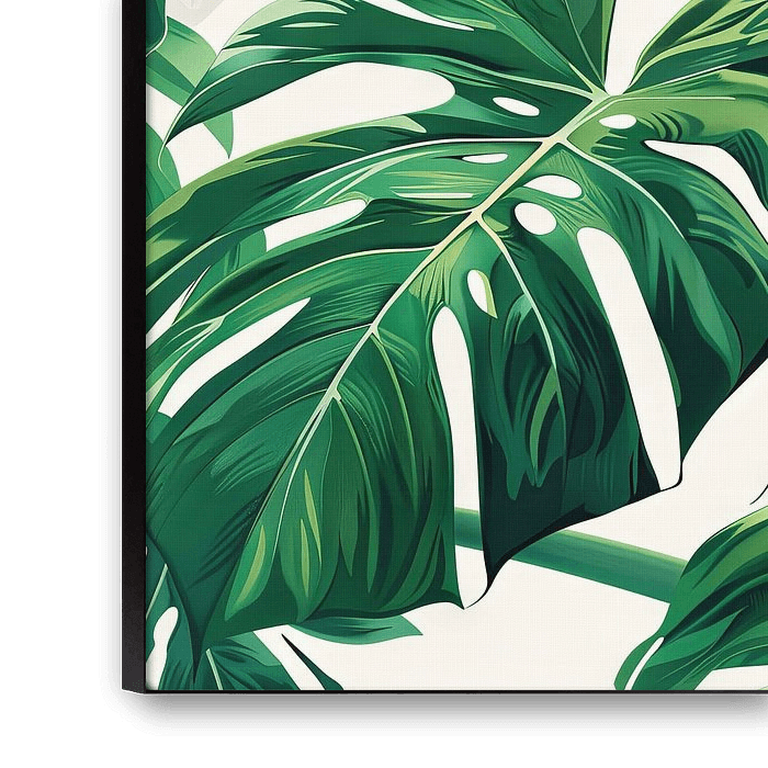 Dieses Kunstwerk präsentiert eine Ansammlung von Monstera-Blättern in einer lebendigen und üppigen Darstellung. Die tiefen Grüntöne und die charakteristischen Ausschnitte der Blätter verleihen diesem Kunstdruck eine tropische und exotische Atmosphäre. Der klare, helle Hintergrund hebt die natürliche Schönheit der Monstera hervor und bringt sie in den Vordergrund. Dieses Design eignet sich ideal für moderne Wohnräume oder Büros, die eine exotische Note suchen, und spricht Pflanzenliebhaber und Fans tropischer Ästhetik gleichermaßen an.