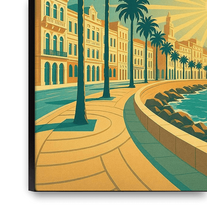 Dieses Art-Déco-Plakat von Montevideo fängt die entspannte Kultiviertheit von Uruguays sonnenverwöhnter Hauptstadt ein, die im Morgenlicht der Rambla de Montevideo erstrahlt. Die goldenen Strahlen der strahlenden Sonne über dem Río de la Plata durchfluten die elegante Uferpromenade mit Wärme. Palmen säumen die sanft geschwungene…