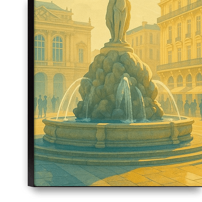 Bestelle dieses Art Deco-Wandbild Montpellier Art Deco Poster - Place de la Comédie von Travel Shop als Reproduktion auf Leinwand, Alu-Dibond, als Poster, Fototapete oder Acrylglasbild.