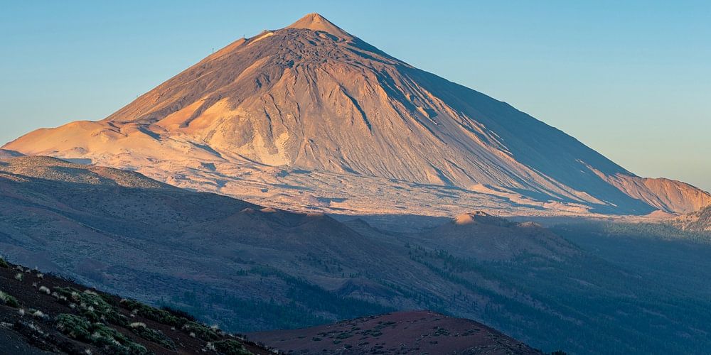 Ein kalter Oktobermorgen legt sich sanft wie ein Nebelschleier über den Teide-Nationalpark auf Teneriffa. Die Luft ist klar, frisch und durchdrungen von der Stille der frühen Morgenstunden. Das Panorama eröffnet sich von Osten her und erstreckt sich weit über die schroffen Lavaformationen, die in den weichen, rosigen Schimmer des Sonnenaufgangs getaucht sind. Der Pico del Teide, der höchste Berg Spaniens mit seinen beeindruckenden 3.715 Metern, ragt majestätisch in die kühle Morgenluft, umhüllt von den ersten goldenen Strahlen des Tages.