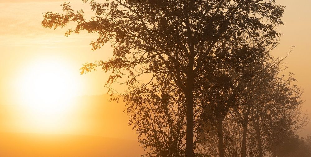 Diesen nebeligen Sonnenaufgang erlebte ich in Lichtenhain/Sächsische Schweiz.