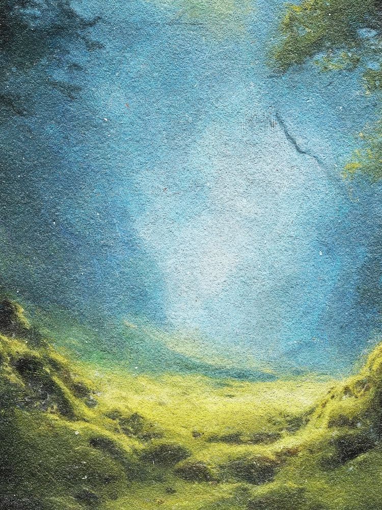 Die Atmosphäre ist ruhig und märchenhaft - als ob jeden Moment ein Tier oder eine Figur aus einer Legende erscheinen könnte. Die Komposition ist einladend, mit einer subtilen Durchsichtigkeit, die Tiefe und Staunen hervorruft. Das Werk ist reich an Details, strahlt aber gleichzeitig Ruhe aus.