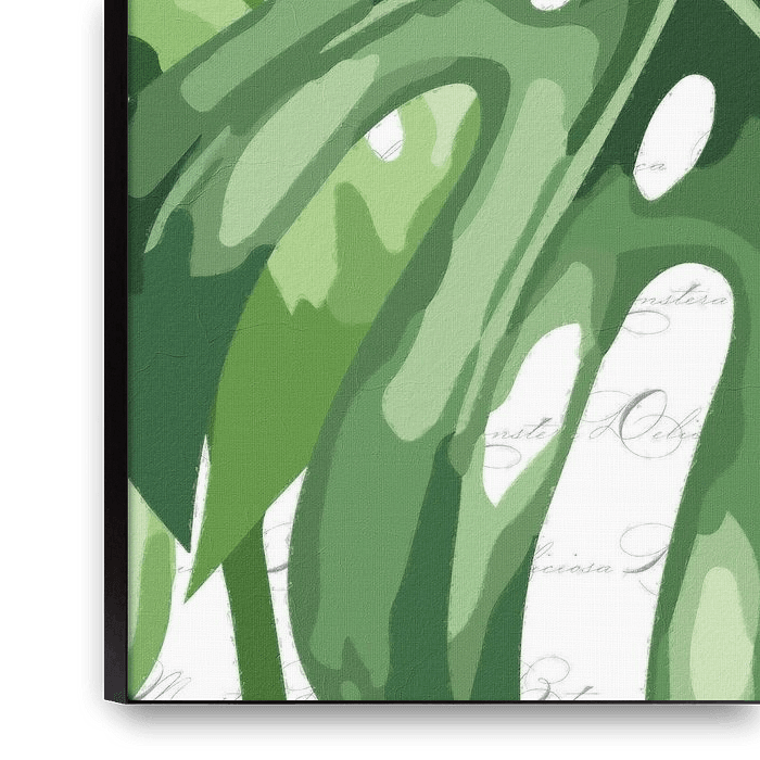 Bestelle diese Malerei Mostera deliciosa mit Text als Triptychon 2 v. 3 von AidasignArt als Reproduktion auf Leinwand, Alu-Dibond, als Poster, Fototapete oder Acrylglasbild.