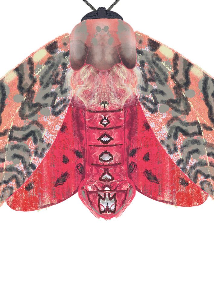 Mottenrosarot auf weißem Hintergrund. Diese Motte ist 1 aus einer Reihe von Mottenillustrationen. Haben Sie jemals auf die Farben und Muster von Motten geachtet? Schön, oder?!