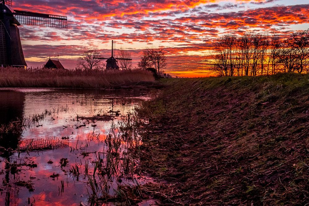 Die drei Windmühlen , bei Rustenburg während des Sonnenaufgangs am 29. Dezember 2019.
