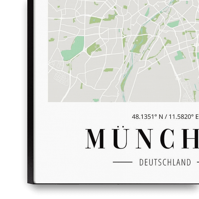 Bestelle diese Illustration München Stadtplan Poster - Minimalistische Karte der bayerischen Metropole von Poster Art Shop als Reproduktion auf Leinwand, Alu-Dibond, als Poster, Fototapete oder Acrylglasbild.