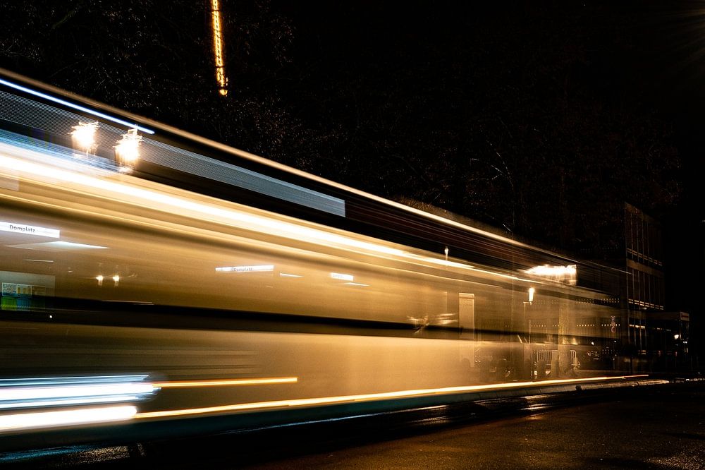 Dieses Bild zeigt einen losfahrenden Bus in einer Langzeitbelichtung.