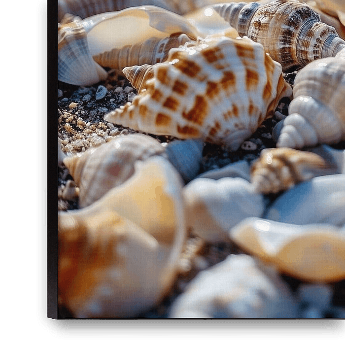 Bestelle das Foto Muscheln am Strand von ARTemberaubend als Reproduktion auf Leinwand, Alu-Dibond, als Poster, Fototapete oder Acrylglasbild.