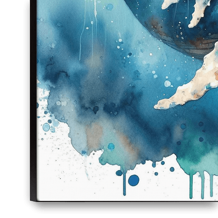 Bestelle dieses abstrakte Wandbild Mutter und Kalb Wale Aquarell von Chromatic Fusion Studio als Reproduktion auf Leinwand, Alu-Dibond, als Poster, Fototapete oder Acrylglasbild.