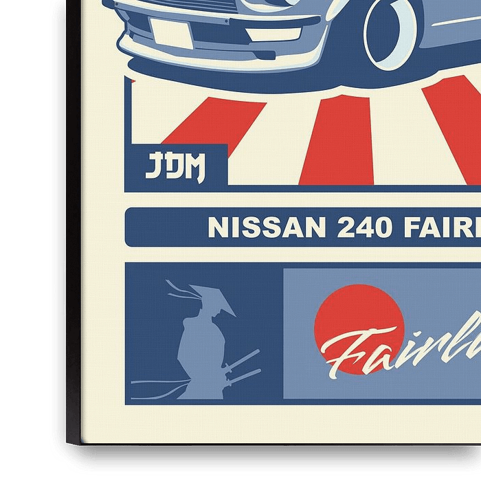 Bestelle dieses Popart-Wandbild NISSAN 240Z von Kaminarirace als Reproduktion auf Leinwand, Alu-Dibond, als Poster, Fototapete oder Acrylglasbild.