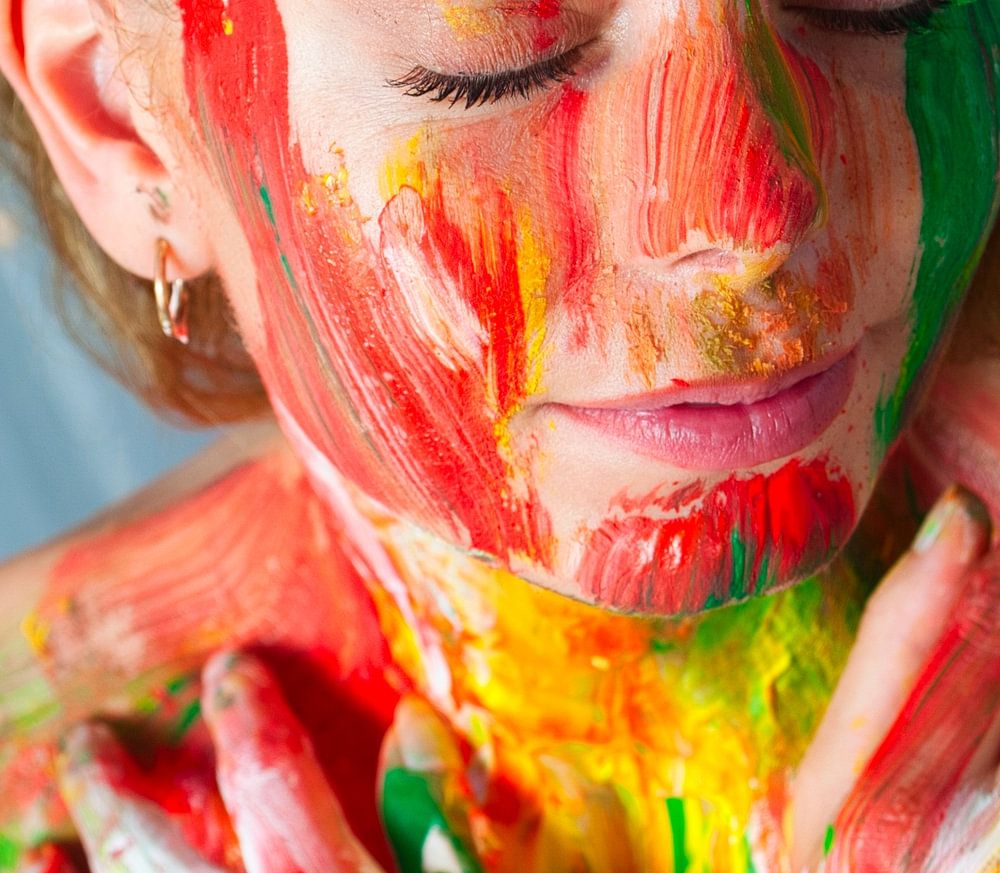 Fotoshooting mit dem Modell Zoë . Schön unordentlich mit Plakatfarbe. So entstehen farbenfrohe Fotos mit einem fröhlichen Aussehen.