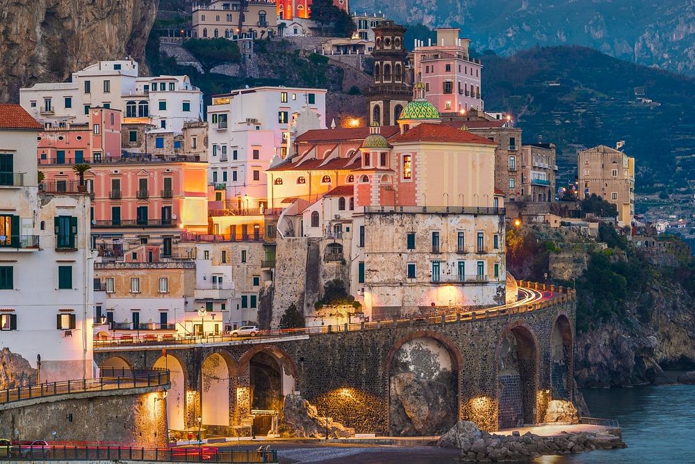 Nacht in Atrani, Amalfiküste, Kampanien, Italien