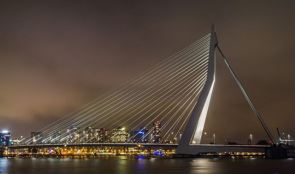 Schöne Nachtaufnahme der Erasmusbrücke in Rotterdam. Auch der Schwan genannt.