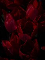 Eine Nahaufnahme von tiefroten Tulpenblättern. Aufgenommen an einem sonnigen Tag in Amsterdam.