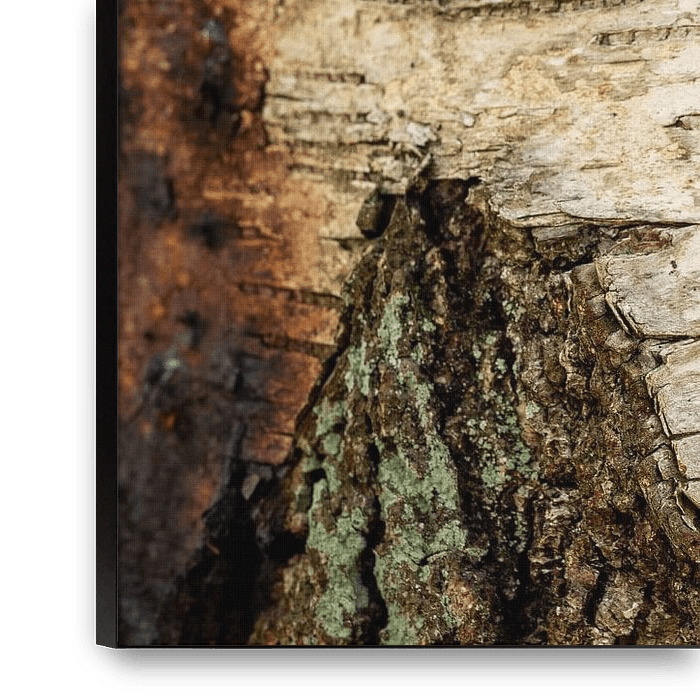 Farbenintensives und Charakterstarke Nahaufnahme der Rinde einer Birke in Weiß und Braun.