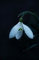 Nahaufnahme einer Schneeglöckchenblüte mit Wassertropfen von Jelena Jovanovic Fine Art