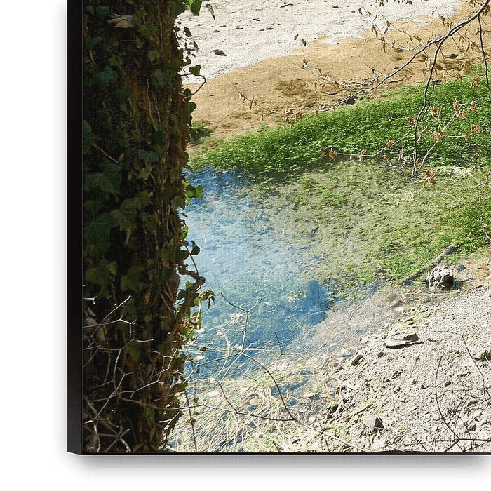 Bestelle das Foto Nahaufnahme vom Blautopf See in Blaubeuren in Deutschland mit grünen Algen von creativcontent als Reproduktion auf Leinwand, Alu-Dibond, als Poster, Fototapete oder Acrylglasbild.