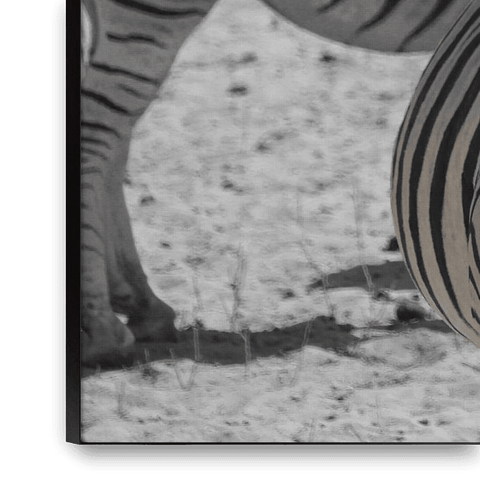 Über „Nahaufnahme von Zebras in Botswana, Afrika, mit schwarzem und weißem Hintergrund“ von Phillipson Photography