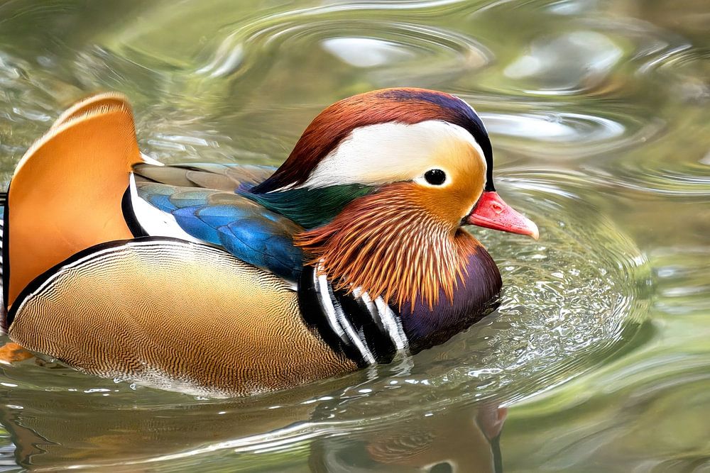 Nahaufnahme von einer Mandarin Ente im Wasser