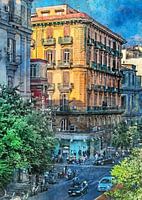 Bestelle das digitale Kunst Bild Neapol Neapel Italien Stadt Kunst #Napoli von JBJart Justyna Jaszke als Reproduktion auf Leinwand, Alu-Dibond, als Poster, Fototapete oder Acrylglasbild.