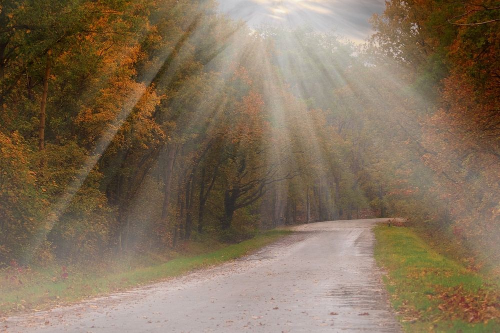 Der Herbst in den Niederlanden: Die Bäume färben sich in schönen Herbstfarben und die Blätter fallen auf den Boden.