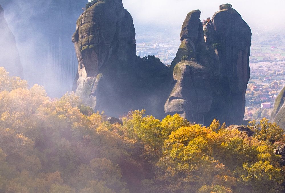 Über "Neblige Felsen im Meteora-Gebiet, Kalabaka, Griechenland"