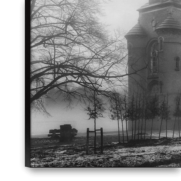 Bestelle dieses Landschafts-Wandbild Neblige Kirche von Billy Cage als Reproduktion auf Leinwand, Alu-Dibond, als Poster, Fototapete oder Acrylglasbild.