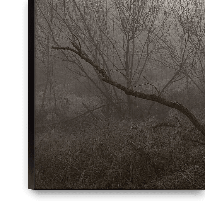 Der Nebel in Kombination mit der unregelmäßigen Vegetation verleiht diesem Foto eine leicht düstere Atmosphäre. Das Foto wurde in der Nähe des Dorfes Pannerden in der Liemers (Gelderland) aufgenommen.