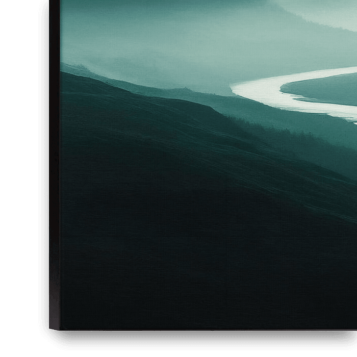 In einem sanften Spiel von Licht und Schatten entfalten sich majestätische Hügel, während der Nebel geheimnisvoll über die Landschaft gleitet. Ein glitzernder Fluss schlängelt sich durch das sanfte Grau und Grün, als wolle er die Geheimnisse dieses verwunschenen Tals bewahren. Die Ruhe der Natur umhüllt alles und lädt zu träumerischen…