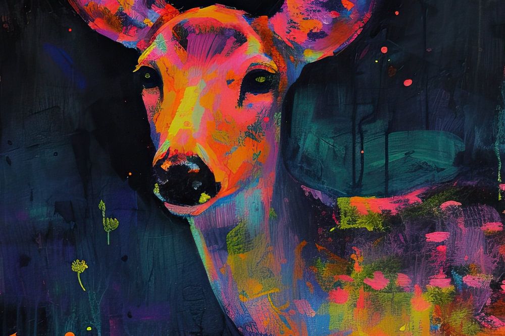 Neon Whisper Fawn - abstrakte Neon-Hirschmalerei