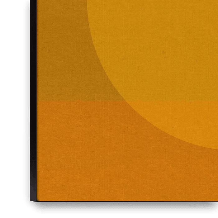 Bestelle dieses Landschafts-Wandbild Neon-Kunst. Bunte minimalistische geometrische abstrakte in orange, gelb, dunkel Gold. von Dina Dankers als Reproduktion auf Leinwand, Alu-Dibond, als Poster, Fototapete oder Acrylglasbild.