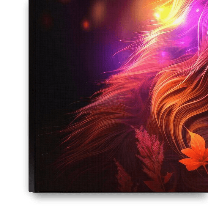 Bestelle das digitale Kunst Bild Neon Wolf: Wilde Eleganz in leuchtenden Farben von Shine by Nous als Reproduktion auf Leinwand, Alu-Dibond, als Poster, Fototapete oder Acrylglasbild.