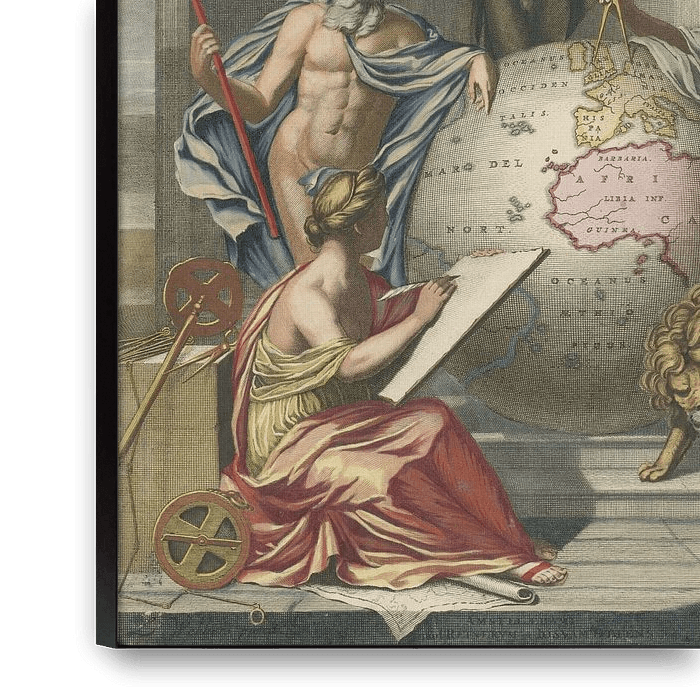 Bestelle Neptun und Cybele neben einer Weltkugel, Jan van Munnickhuysen als Reproduktion auf Leinwand, Alu-Dibond, als Poster, Fototapete oder Acrylglasbild.