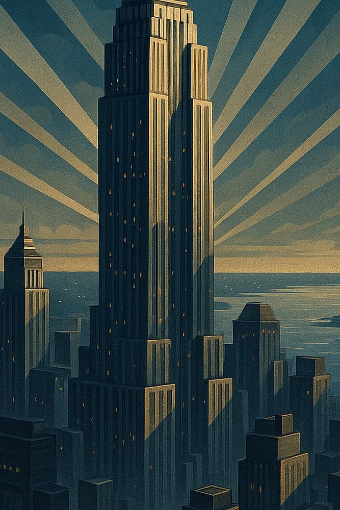 Jedes Gebäude erhebt sich in perfektem Rhythmus, eine Sinfonie aus Geometrie und Ehrgeiz. Das Licht strahlt nach außen und symbolisiert Energie, Kreativität und die unaufhaltsame Eigendynamik von New York City. In der Ferne erhebt sich ruhig die Freiheitsstatue und vervollständigt dieses zeitlose Porträt des Strebens.