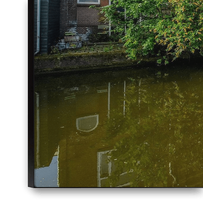 Bestelle das Foto Nieuwe Rijn Leiden mit Gebäude von Eduardo IJdo von Dirk van Egmond als Reproduktion auf Leinwand, Alu-Dibond, als Poster, Fototapete oder Acrylglasbild.