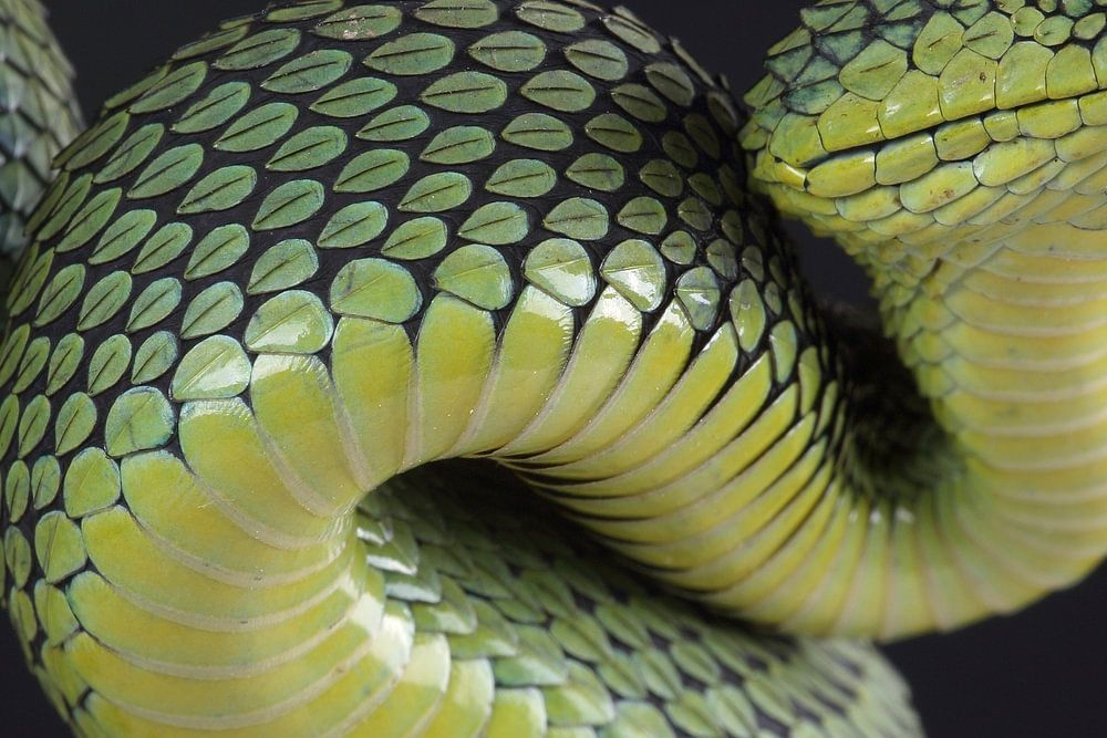 Die Nitsche's Baumotter ist eine kleine, giftige Schlangenart aus der Familie der Vipern. Diese schöne Schlange zeichnet sich durch ihre gezackten Schuppen und ihre leuchtenden Farben aus, die von leuchtendem Grün bis hin zu gelb-grün mit einem Muster aus dunklen Markierungen reichen. Die Schlange ist relativ klein und hat einen schlanken Körper, der perfekt an das Leben in Bäumen angepasst ist.