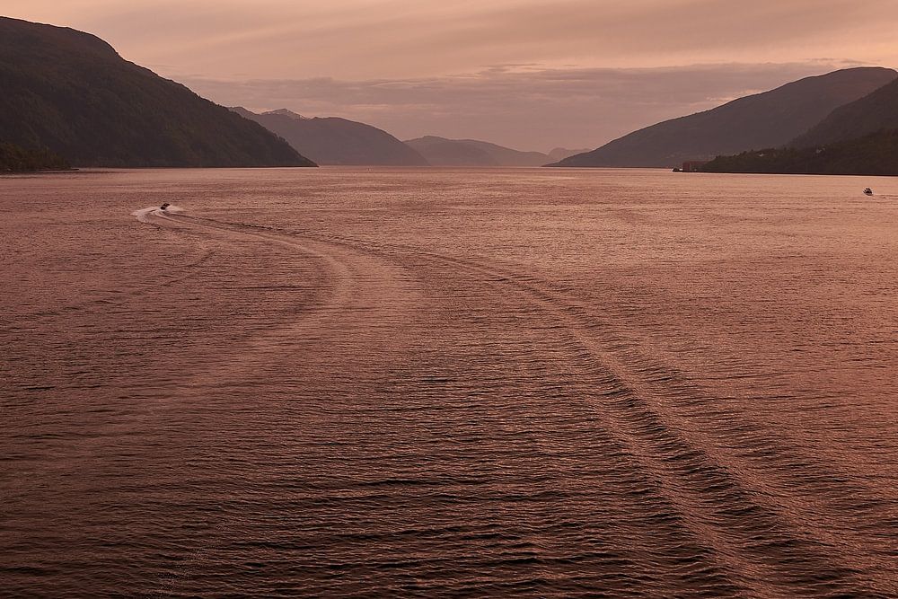 Der Nordfjord, ein beeindruckendes Fjordgewässer in West-Norwegen, erstreckt sich majestätisch in die Ferne. Das Wasser des Fjords ist so ruhig und spiegelglatt, dass es die umliegende Landschaft perfekt reflektiert, wodurch ein malerisches Panorama entsteht.