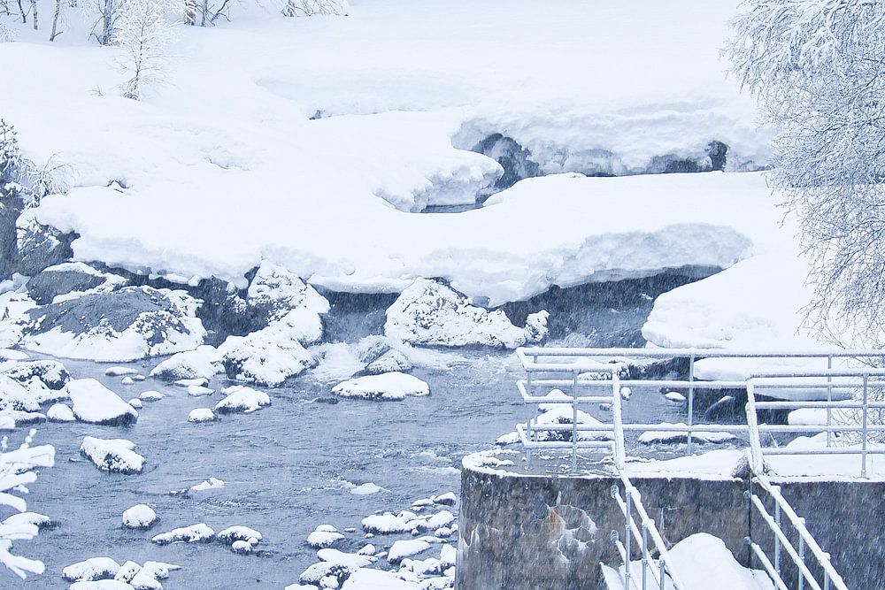 Norwegisches Hochgebirge, verschneit Berge und Landschaft. Winterliche Landschaft mit viel Weite.