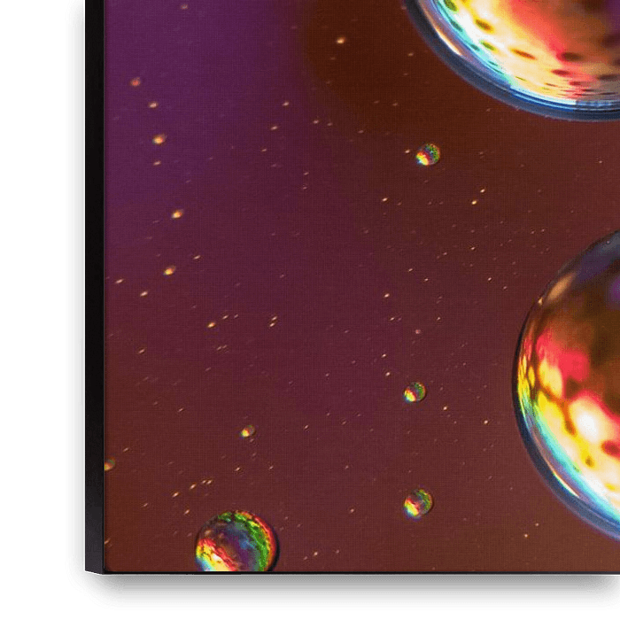 Bestelle dieses abstrakte Wandbild Öltropfen auf Wasser von Marianne Twijnstra als Reproduktion auf Leinwand, Alu-Dibond, als Poster, Fototapete oder Acrylglasbild.