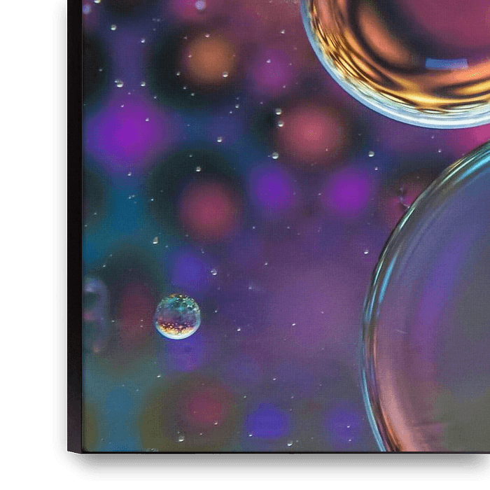 Bestelle dieses abstrakte Wandbild Öltropfen auf Wasser von Marianne Twijnstra als Reproduktion auf Leinwand, Alu-Dibond, als Poster, Fototapete oder Acrylglasbild.