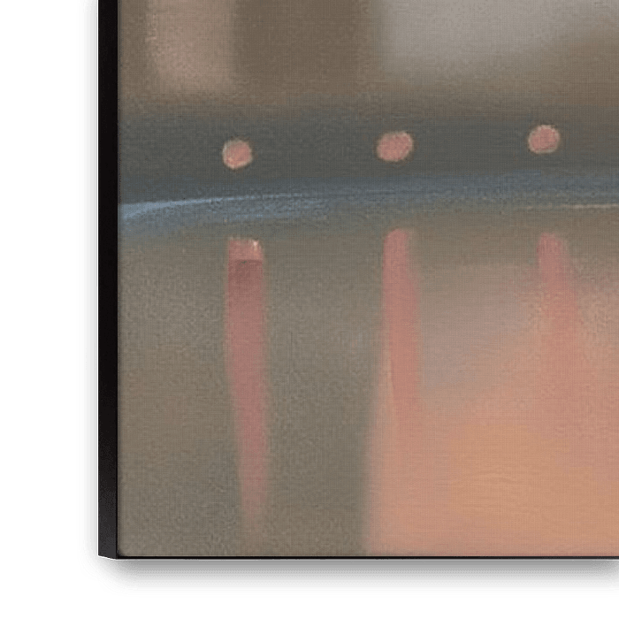 Oasis in the City" zeigt einen friedlichen Eisvogel, der über die ruhigen städtischen Gewässer blickt. Die verschwommene Skyline in der Morgendämmerung gibt eine verträumte Darstellung der Stadt, in der Natur und städtisches Leben zusammenkommen. Die Reflexion der sanften Lichter auf dem Wasser verleiht dieser städtischen Oase einen Hauch von Magie.